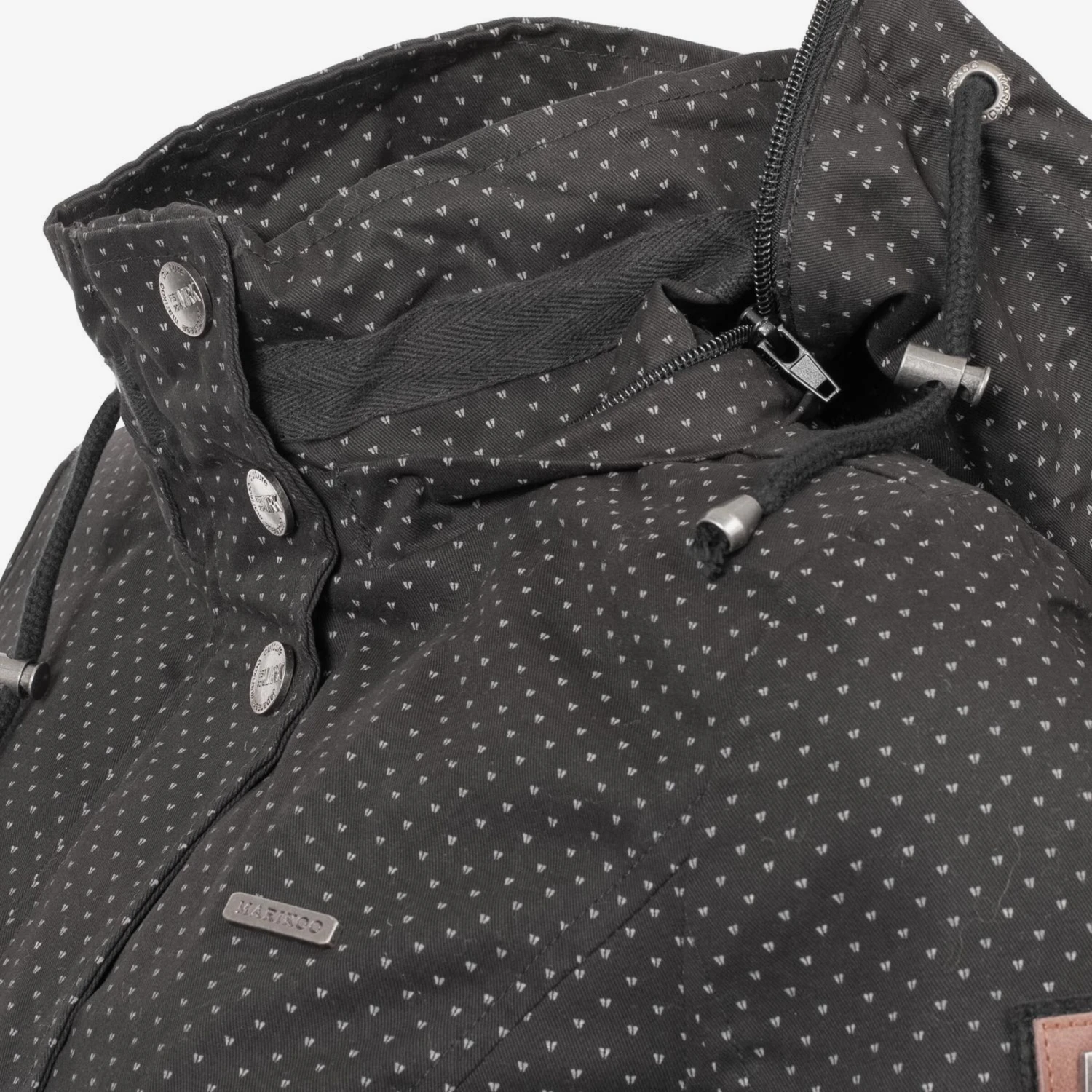 GestippeldKatoenRitssluitingGevoerde zoom/randDrukknopenCapuchon met trekkoordGetailleerd modelBinnenzakZakken aan de zijkantLabel plaatjeVerstelbare tailleAll-over patroonApplicatiesLabel patch/label flagMetalen oogjesLicht gevoerdRitssluiting