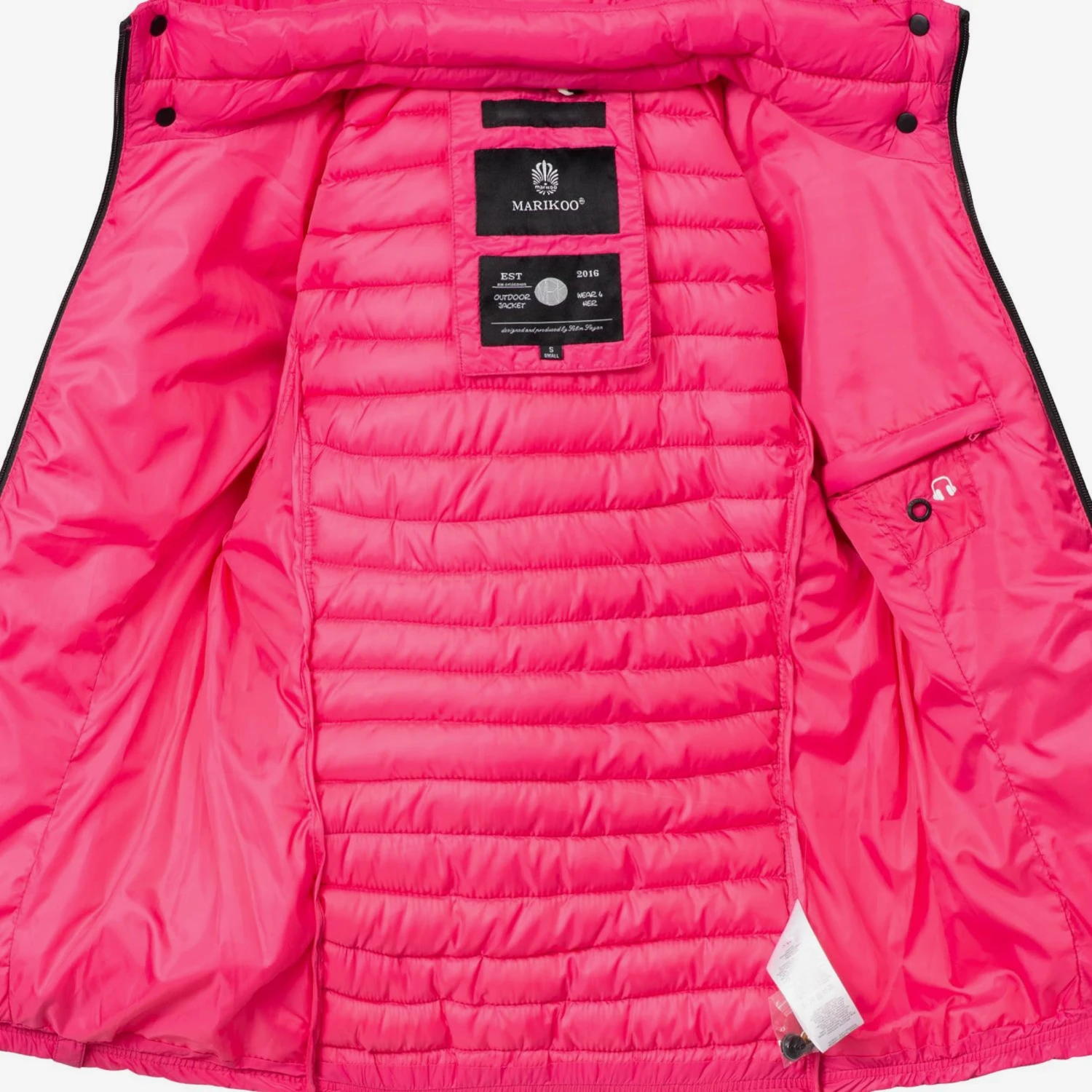 EffenGewatteerde jasRechte zoomCapuchon met opstaande kraagMet capuchonGeribd ceintuurtjeBinnenzakRitszakken aan de zijkantWeense naadLabel plaatjeLabel patch/label flagStikselsOp staal nadenWaterafstotendLicht gevoerdRitssluiting